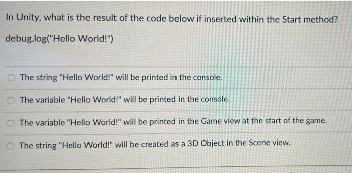 Solved In Unity What Is The Result Of The Code Below If Chegg Com